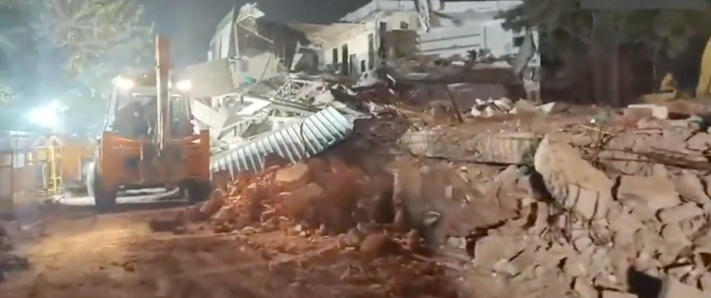 According to officials, the demolition drive began close to midnight and continued into the early hours of the morning, marking one of the most high-profile after-dark civic enforcement actions in the area in recent months.