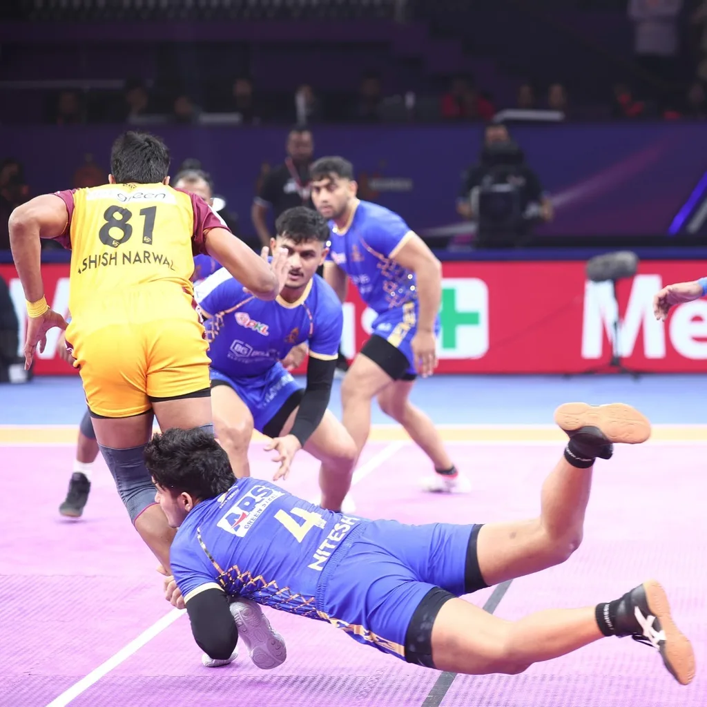 But the Thalaivas’ defense held firm under pressure, pulling off key tackles at just the right time. Their corner defenders produced some memorable ankle holds and dashes, stopping the Titans from inflicting an all-out.